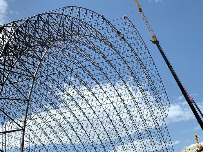 (2)网架加工前应对现场尺寸进行复测,确认无误后方可进行加工、安装;网架制作、运输、安装应遵守《空间网格结构技术规程》JGJ7-2010、《钢网架高邮螺栓球节点》JG/T 10-2009、《钢网架高邮螺栓球节点用高强度螺栓》 GB/T 16939-2016、《高邮钢结构高邮工程高邮施工规范》 GB50755-2012、《高邮钢结构高邮工程施工质量验收标准》 GB50205-2020。